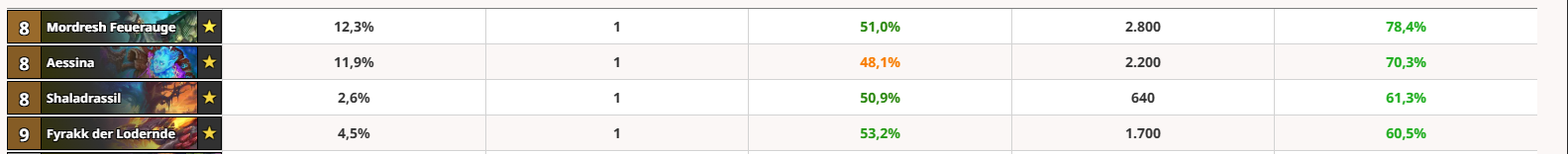 Auch hier veränderst du den Kontext. Es geht nicht um Situationen, in denen man Fyrakk nicht ausspielen will, sondern um Situationen, in denen die Karte eine sichere Niederlage umdrehen kann. Und da sehe ich Fyrakk als deutlich flexibler an, weil er ohne Voraussetzungen sofortigen Wert in vielen verlierenden Situationen liefert während Überleben des Stärkeren das nur unter einer Voraussetzung tut: Wenn man Diener auf dem Feld hat. Alles andere (Bufft Diener auf der Hand und im Deck) ist für mich kein Turnaround, sondern ein Stärkungszauber, der mir für den weiteren Verlauf des Duells einen starken Vorteil verschafft (ähnlich wie Aviana, Doktor Holli’dae, Rheastrasza etc.).