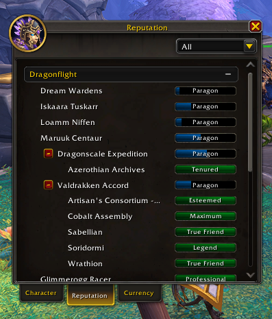 so i go into my character tab to see which reputations i need to work on and im only getting showing! before patch i had all the dragonflight factions on the list.