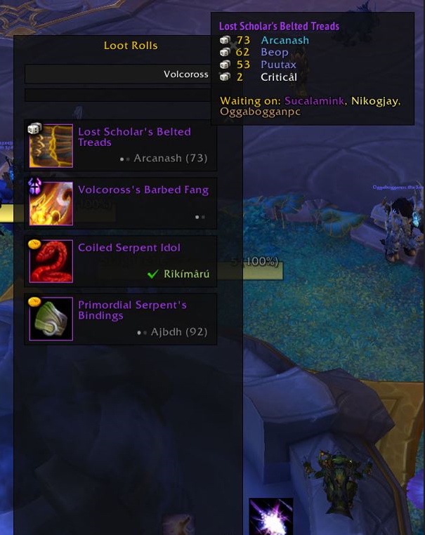 Over two hours now and it’s still waiting on those two people to roll. I’ve put in a ticket but not sure that will help much because I realised i’m also tied with another player who also hasn’t received the item.