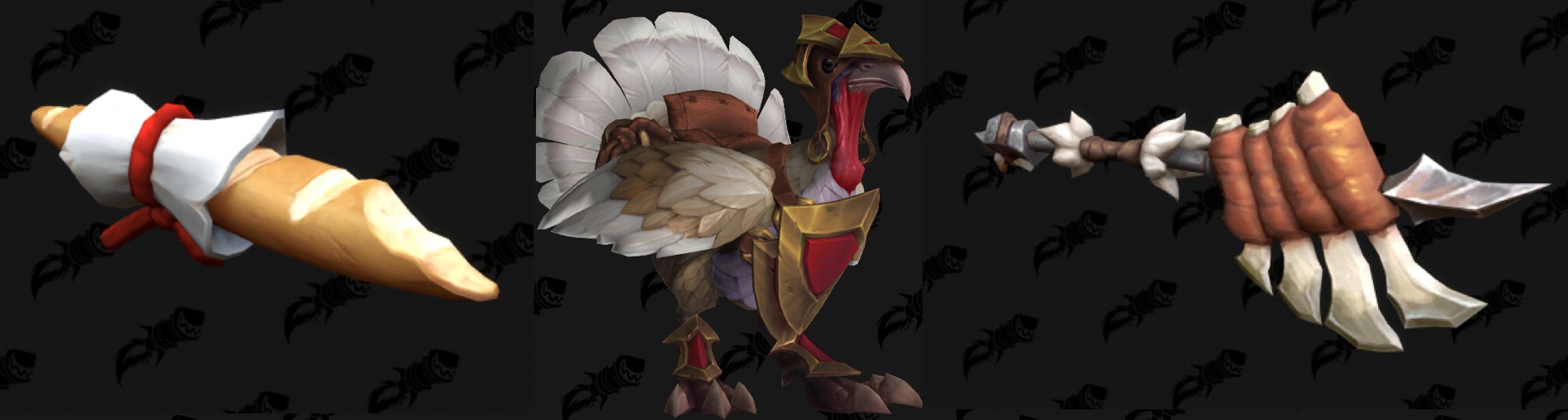 With the 11.2.5 PTR comes a new round of items flagged for the Trading Post in the next few months, including whimsical food items! There are also items reflecting the events of Fall and Winter, like turkey mounts and Frosty Finery.