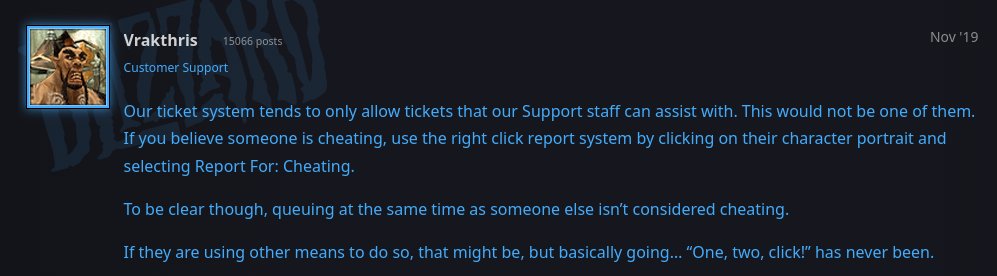 If GMs are actively condoning queue-syncing, more people will stop playing.